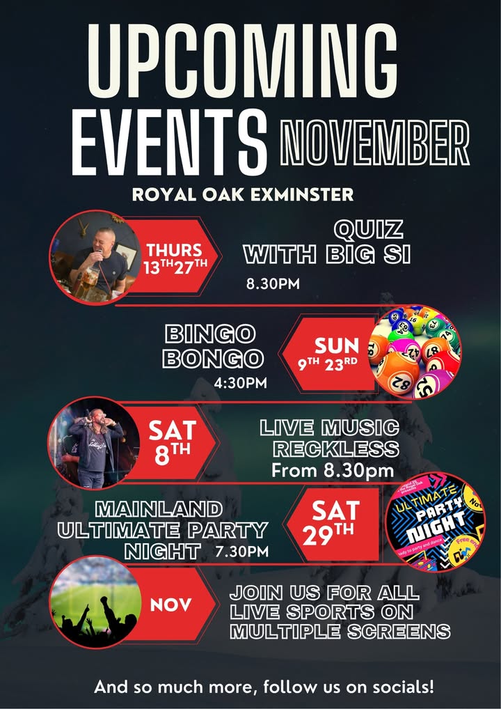 The Royal Oak is situated on the main road through the popular village of Exminster, just a stone’s throw from the Exminster & Powderham Marshes nature reserve! You’ll find us just a few miles south of the cathedral city of Exeter.